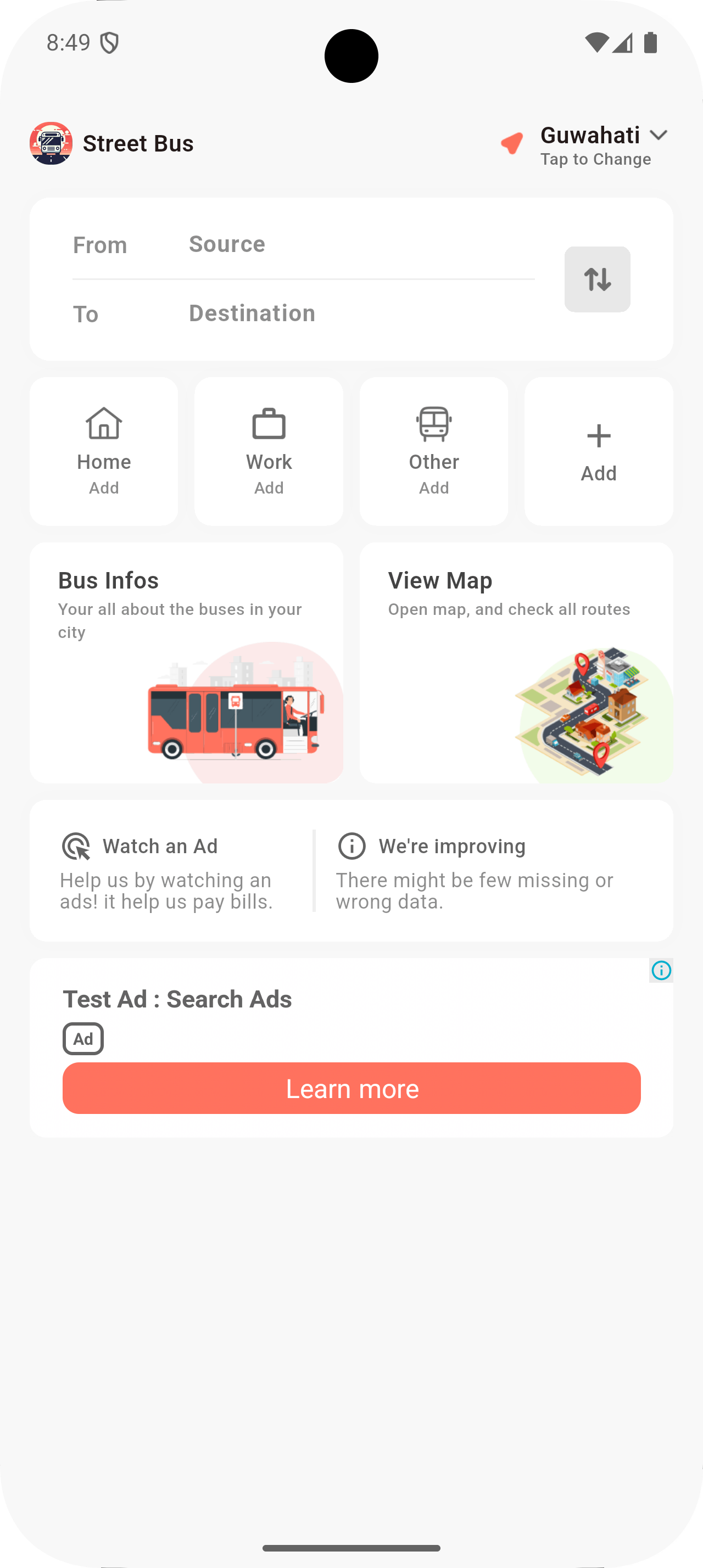 Street Bus currently supports in Guwahati and is expanding coverage. Check the app for availability in your area.