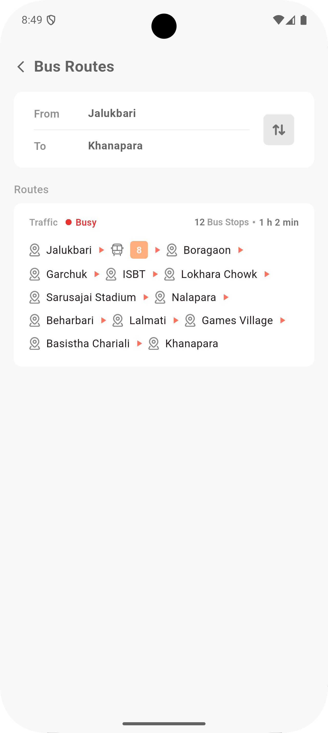 Easily search and navigate public transport routes from one location to another. Street Bus helps you find the best bus routes, plan your journey efficiently, and stay updated with route information.